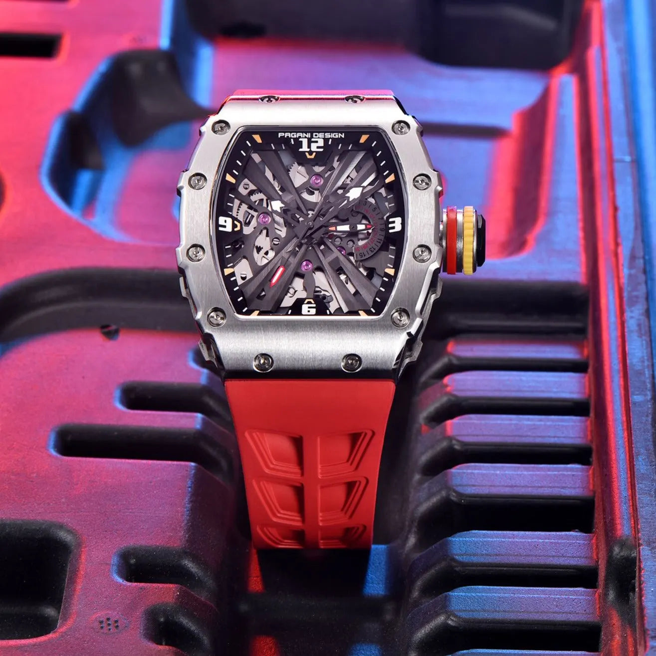 Les montres Pagani Design utilisent des verres en saphir, l’un des matériaux les plus prestigieux dans le monde de la haute horlogerie, reconnu pour sa transparence et son exceptionnelle durabilité.