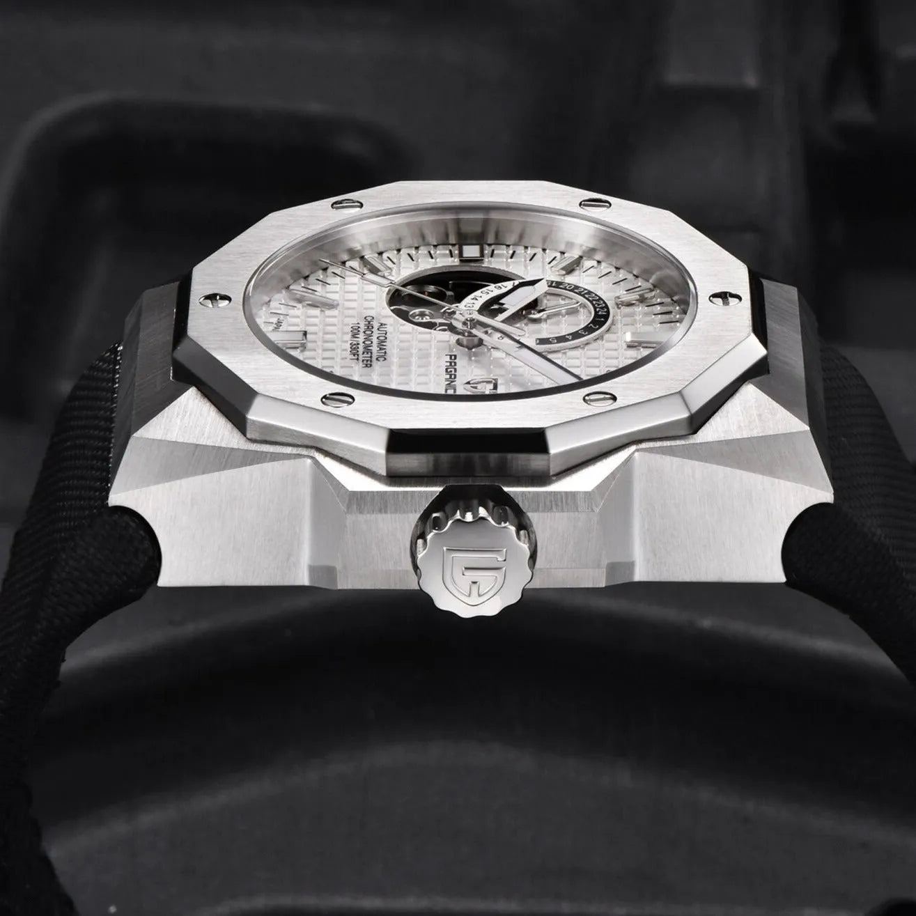 La montre est résistante à l’eau jusqu’à 200 mètres, offrant confiance et tranquillité lors des activités aquatiques. Le système d’étanchéité exclusif de Pagani Design garantit que la montre soit hermétiquement fermée afin de protéger le mécanisme contre les dommages causés par l’eau et d’autres éléments.